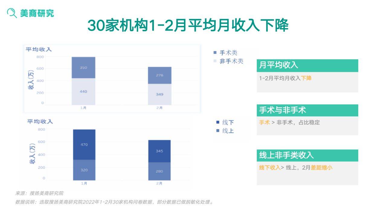 近日,美商研究院发布了《2022年1-2月中国医疗美容连锁机构经营分析报告》,2022年1-2月,调研的30家医美机构月收入均有下降。