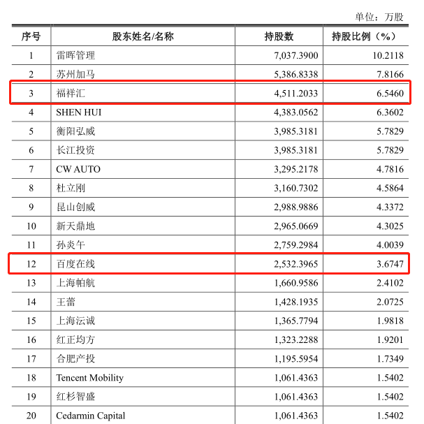 百度、腾讯两家互联网巨头赫然在列,还有红杉、海纳亚洲、阿米巴、新鼎投资、五矿资本、七海资本、跃马资本、天奇创投等众多知名资本。其中,百度系公司福祥汇、百度合计持股份额达10.22%,成为威马汽车最大机构股东。