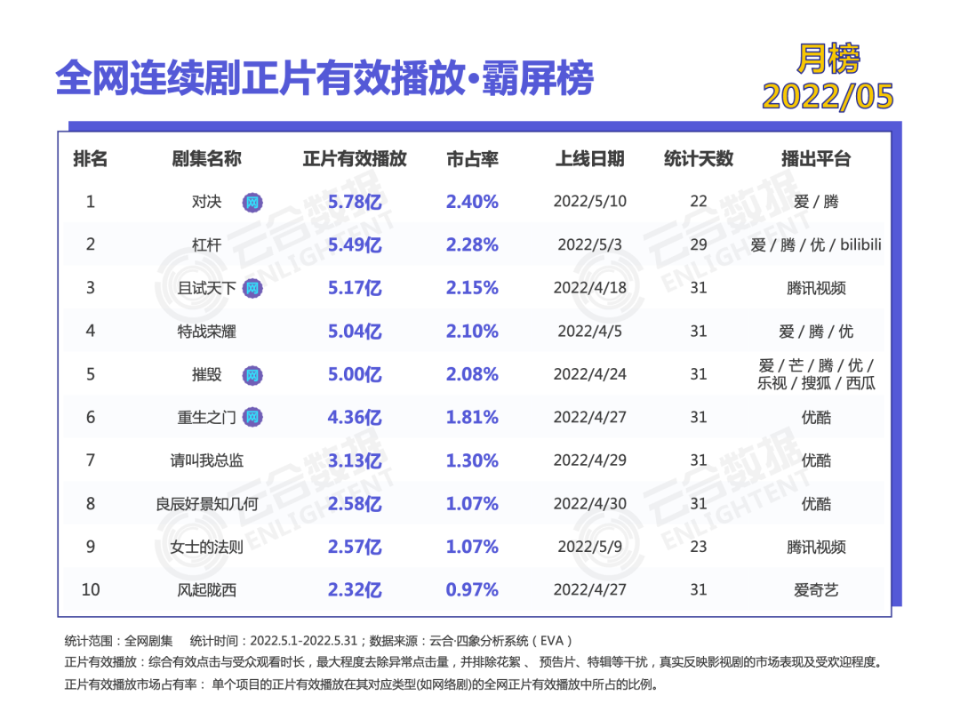 事实上,五月份更像是爱奇艺战略收缩的一月。四月份余热仍在的《人世间》《心居》还有一定的播放量,《亲爱的小孩》《祝卿好》夹在几部古偶玄幻剧之间依然取得了不错的成绩。