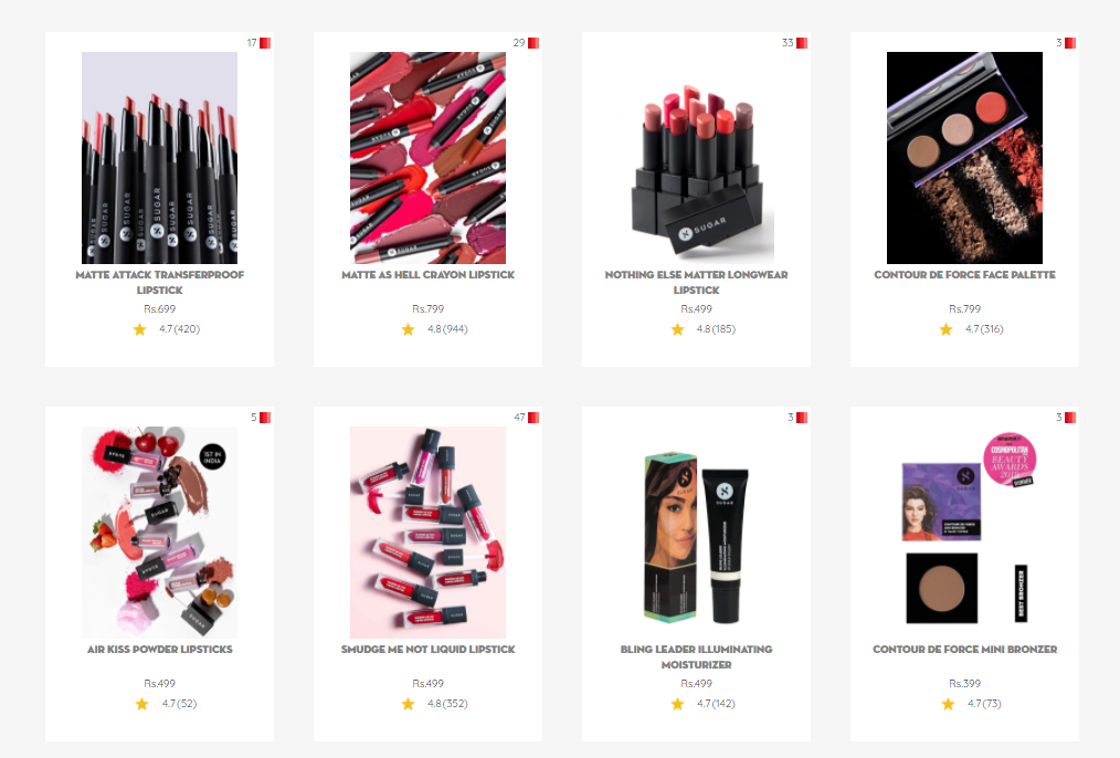 Sugar覆盖彩妆、护肤品和化妆工具等一系列产品,并建立了全渠道业务,除官网外,还在亚马逊、Nykaa和Myntra等电商平台进行销售,以促进全球的交易。