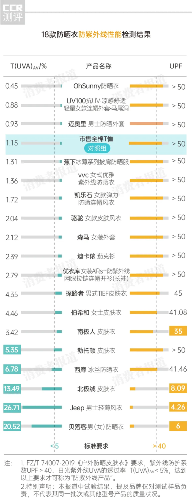 更绝的是,《消费者报道》检测结果显示,市面上许多知名户外品牌“防晒衣”的防紫外线效果竟不如一件普通的全棉T恤。