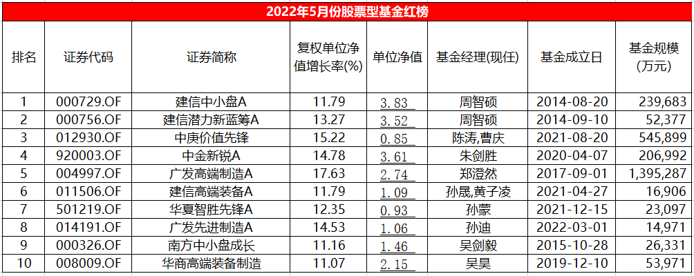 按照上述筛选条件,此次纳入评比的528只股票型基金,5月平均收益率为5.53%。