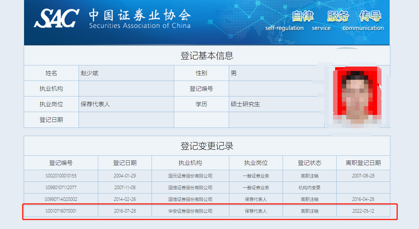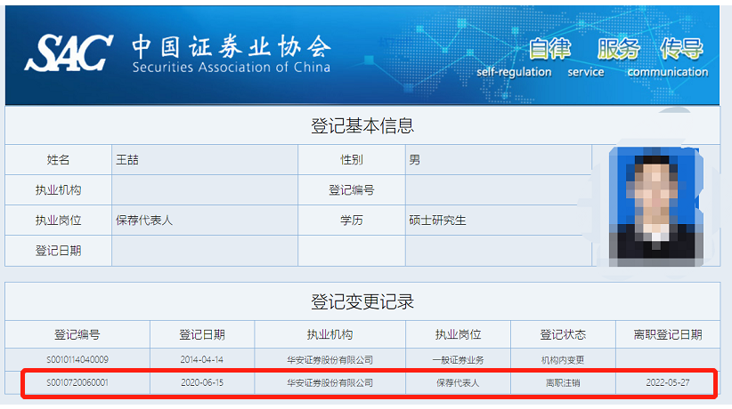 赵少斌、王喆此前都曾在华安证券任职。中国证券业协会官网显示,2016年7月28日,赵少斌在华安证券登记,今年2022年5月12日,赵少斌登记状态显示离职注销。王喆在华安证券的登记时间为2014年4月14日,离职登记日期为今年5月27日。