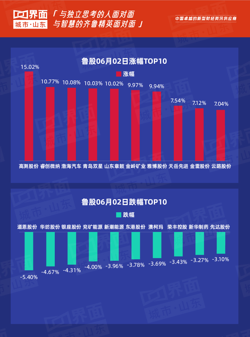 6月2日,山东省内沪深股票有157只个股上涨,101只个股下跌,7只个股持平。