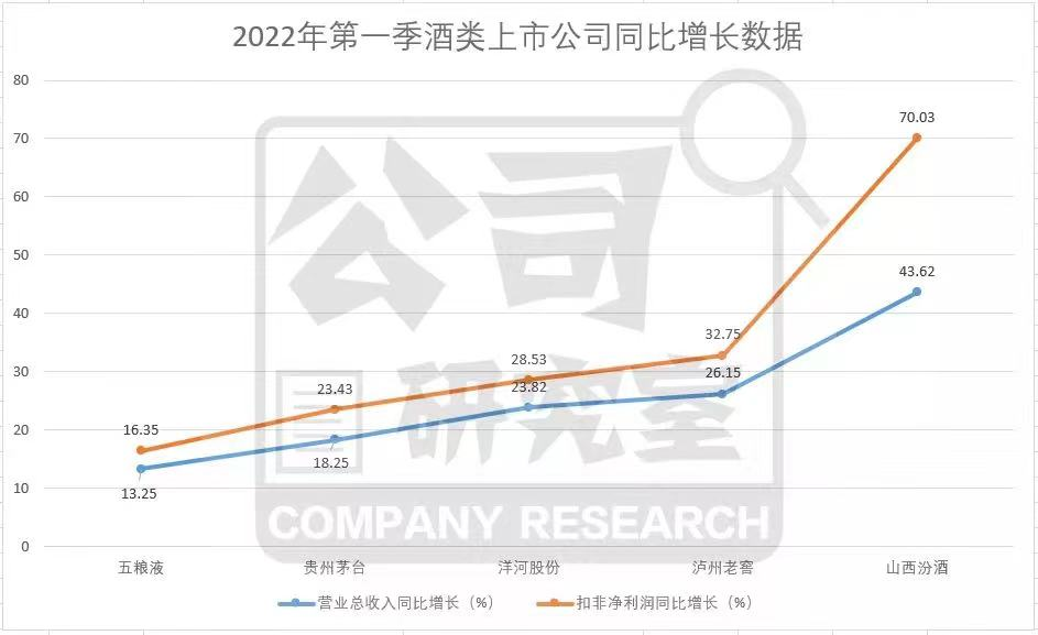 财报显示,2022年一季度,贵州茅台实现营业收入322.96亿元,同比增长18.43%;归属于上市公司股东的净利润172.45亿元,同比增长23.58%。这个数据,虽然比2021年同期进步不小,但在白酒TOP5中,还是排在倒数第二,仅比五粮液高。