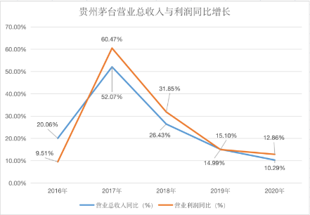 从1950年建厂开始,70多年间贵州茅台总共有8任掌门人,其中,有4任是在2018年-2021年这3年间更换的。这在TOP5头部白酒里面绝无仅有。这些人事更迭的背后,是2017年以来,公司营收与利润增长的同步下滑。