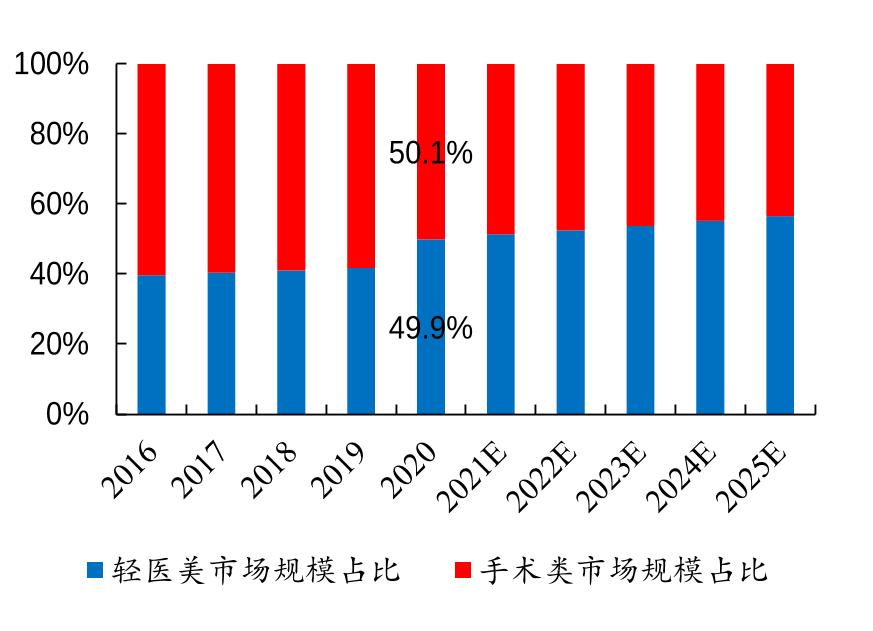 虽说,疫情期间,手术类项目经历了断崖式下跌,但在疫情之前,手术类项目已开始呈现下滑趋势——随着医美渗透率提高,接触医美的消费者逐渐年轻化、需求精细化,求美者的风险意识不断提高,对手术类项目的接受度逐渐走低,并越来越青睐轻医美项目。加之,轻医美对比手术类项目具有复购率高的优势,逐渐受到医美机构的重视。