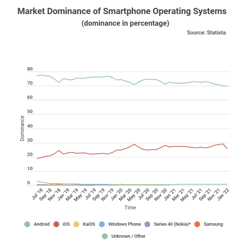 ▲全球智能手机操作系统市场份额情况,来源:Statista