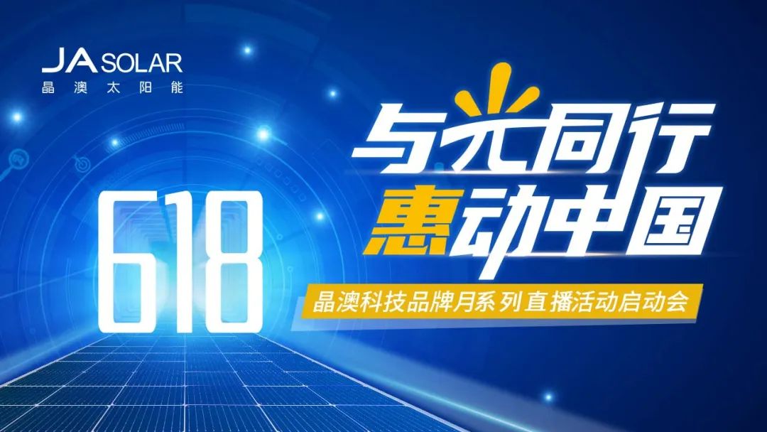“618”购物节期间,6月8日,与光同行,惠动中国——晶澳科技品牌月系列直播活动启动仪式将隆重举行,届时将在“晶澳科技”视频号等平台线上直播。在接下来的6月9日-6月19日将进行40余场线上直播,分享晶澳户用光伏的投资模式和优惠政策,也希望通过这个平台让客户对晶澳和晶澳的产品有更深入的了解。