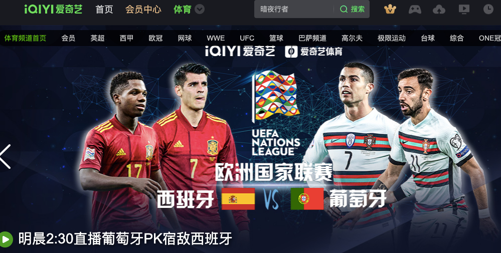 爱奇艺在这点上来说,算是近年来稳步前进的平台之一。最初,爱奇艺在体育版权上的投入并不大,能够被记住的就是网球等赛事;2018年,爱奇艺和新英体育合资成立了新爱体育公司,全权负责爱奇艺体育的运营后,爱奇艺开始发力,形成了以以足球版权作为核心,包括五大联赛中的英超、西甲和意甲,欧足联旗下的欧洲杯、欧洲国家联赛和欧冠联赛等赛事资源。
