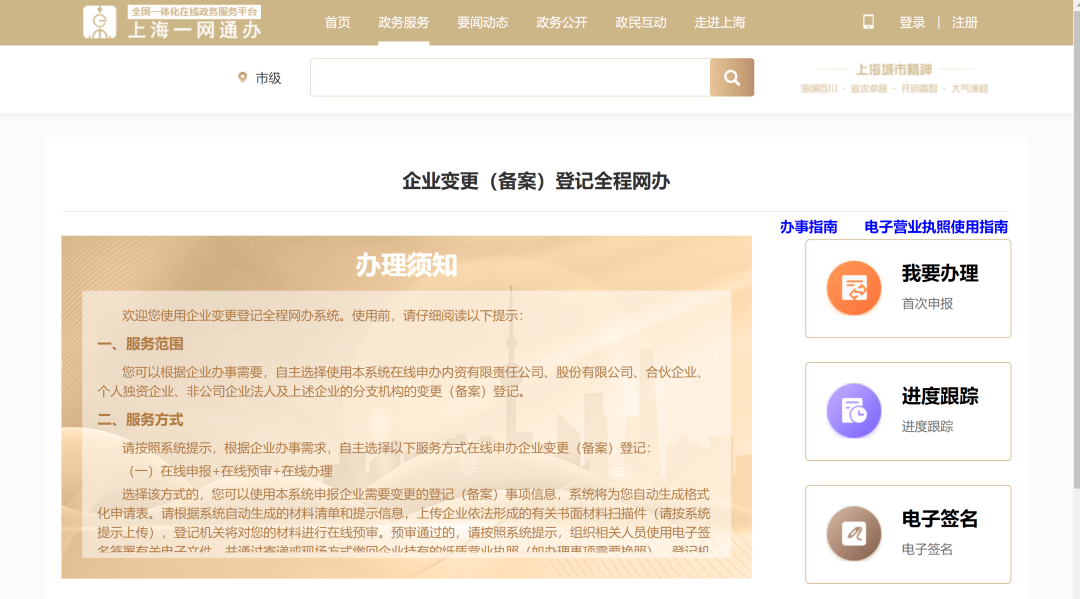 企业变更登记全程网办首页
