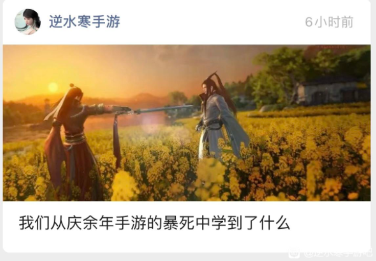 这一次cue《庆余年》“暴死”也不是官微闲着没事干,而是《逆水寒》手游开启预约了。撕友商造成的反应无非两种,支持或反对。支持者当然会下载游戏,以便吹出更多“我游精良又很刚”的彩虹屁;反对者除了无能狂怒外,想打脸《逆水寒》,也得玩了游戏才有干货。总之,是黑是红,目的已经达到了。