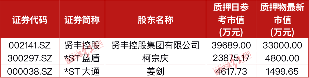 更重要的是,截至2021年末,太平洋证券的债券类投资的信用风险敞口为57.53亿元,股票质押式回购和融资融券业务的信用风险敞口为28.08亿元,合计高达85.61亿元,这是其同期营业收入的5.25倍。据Wind不完全统计,目前太平洋证券的股票质押式回购业务涉及的股票还有*ST蓝盾和*ST大通等三只,而仅这三只股票的质押市值规模已合计缩水2.89亿元(见附表)。