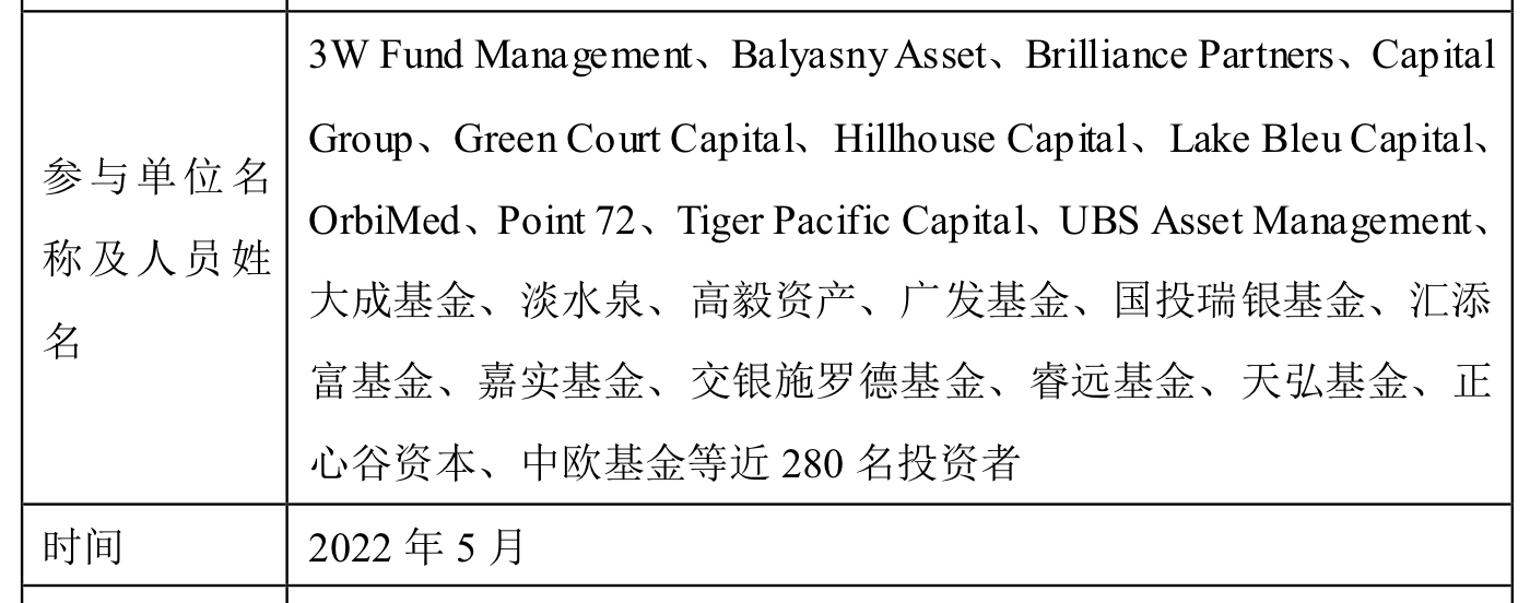 康希诺一系列进展也引起了机构投资者关注,5月31日调研报告显示,以大成基金、淡水泉、高毅资产等为代表的共计280名投资者以电话会议的形式,与董事、副总经理、首席运营官巢守柏博士,董事、副总经理、首席科学官朱涛博士,财务负责人、首席财务官罗樨博士,董事会秘书崔进等公司高层进行了沟通。