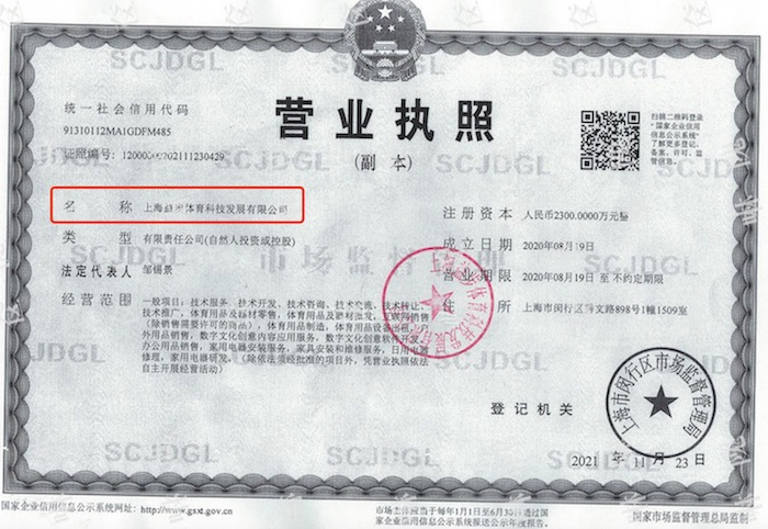 值得注意的是,2021年公司前五大供应商中突然出现了包装印刷类材料的采购商——慈溪市展阳包装材料有限公司(下称:展阳包装)。而这家公司系力玄运动的关联方,该供应商实际控制人张稚展系吴银昌姐姐之子,也就是吴银昌外甥控制的企业。