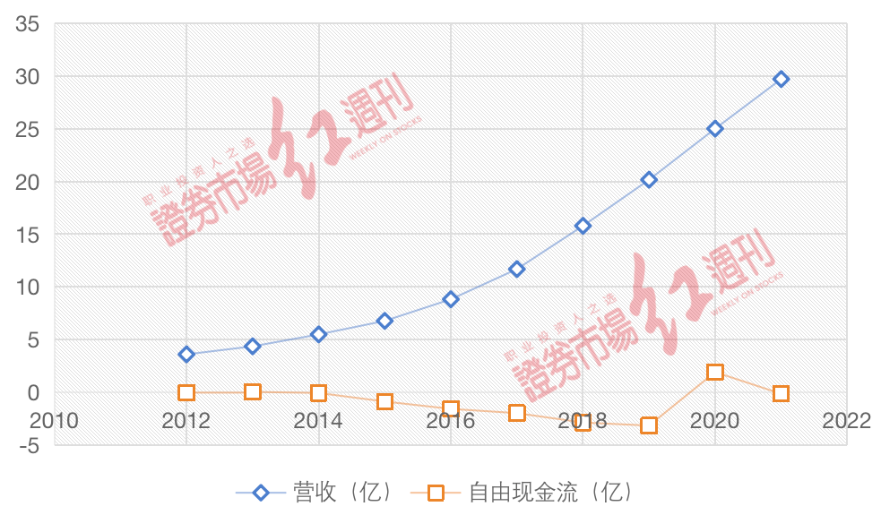 过去10年奈飞营收和自由现金流变动;数据来源:公司10K