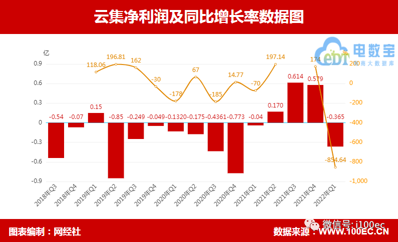 此外,云集2022年一季度归母净利润为-3650万,同比下降854.64%。