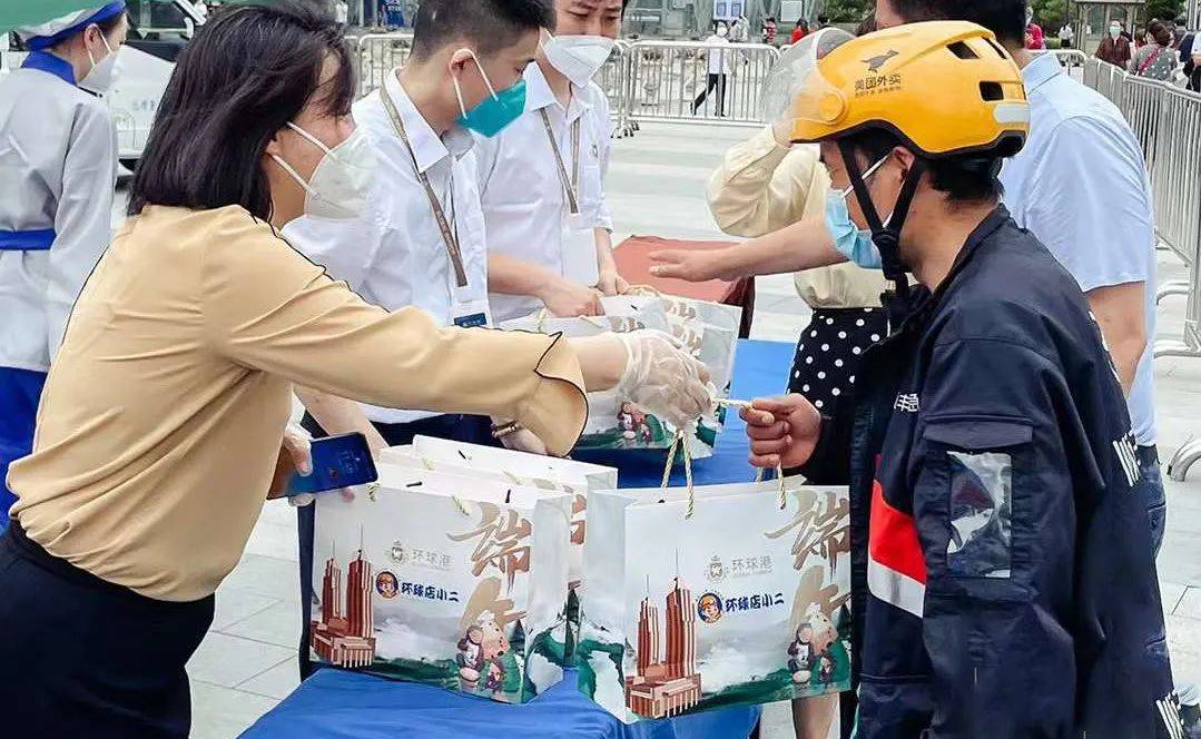 快递小哥、社区工作者、工地施工人员们有序领取端午礼包
