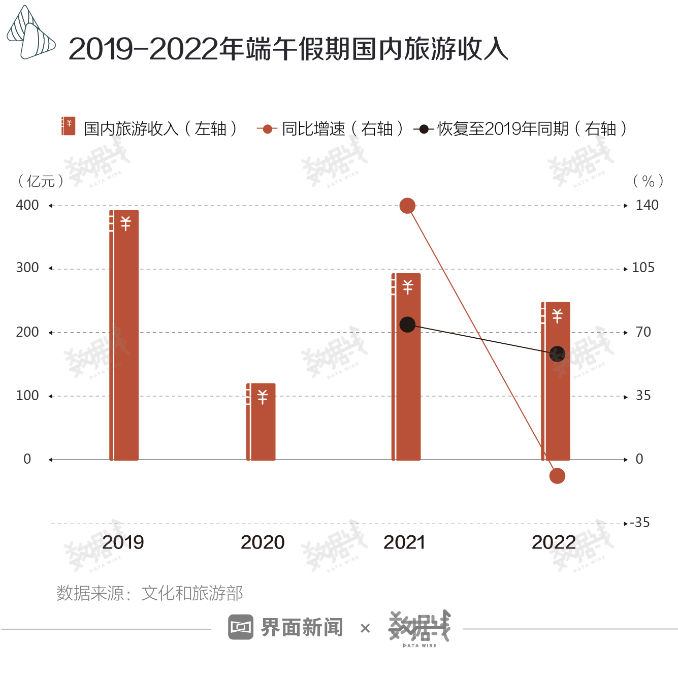 今年端午节假期,国内出游人次、旅游收入已分别恢复至疫情前2019年同期的超8成、超6成水平,表现好于今年同样天数的清明节假期,但不及去年端午节假期。