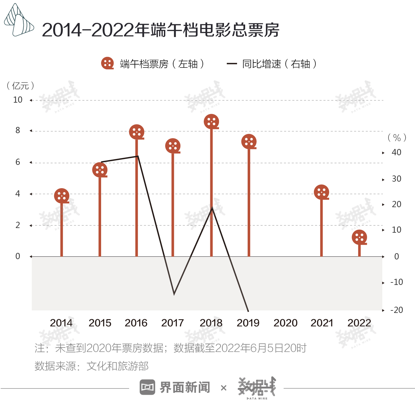 从历年端午档票房数据来看,今年端午档票房创下2014年有数据以来的最低值(2020年无票房数据),相当于疫情前2019年同期的22.3%,不足2021年同档期票房的4成。