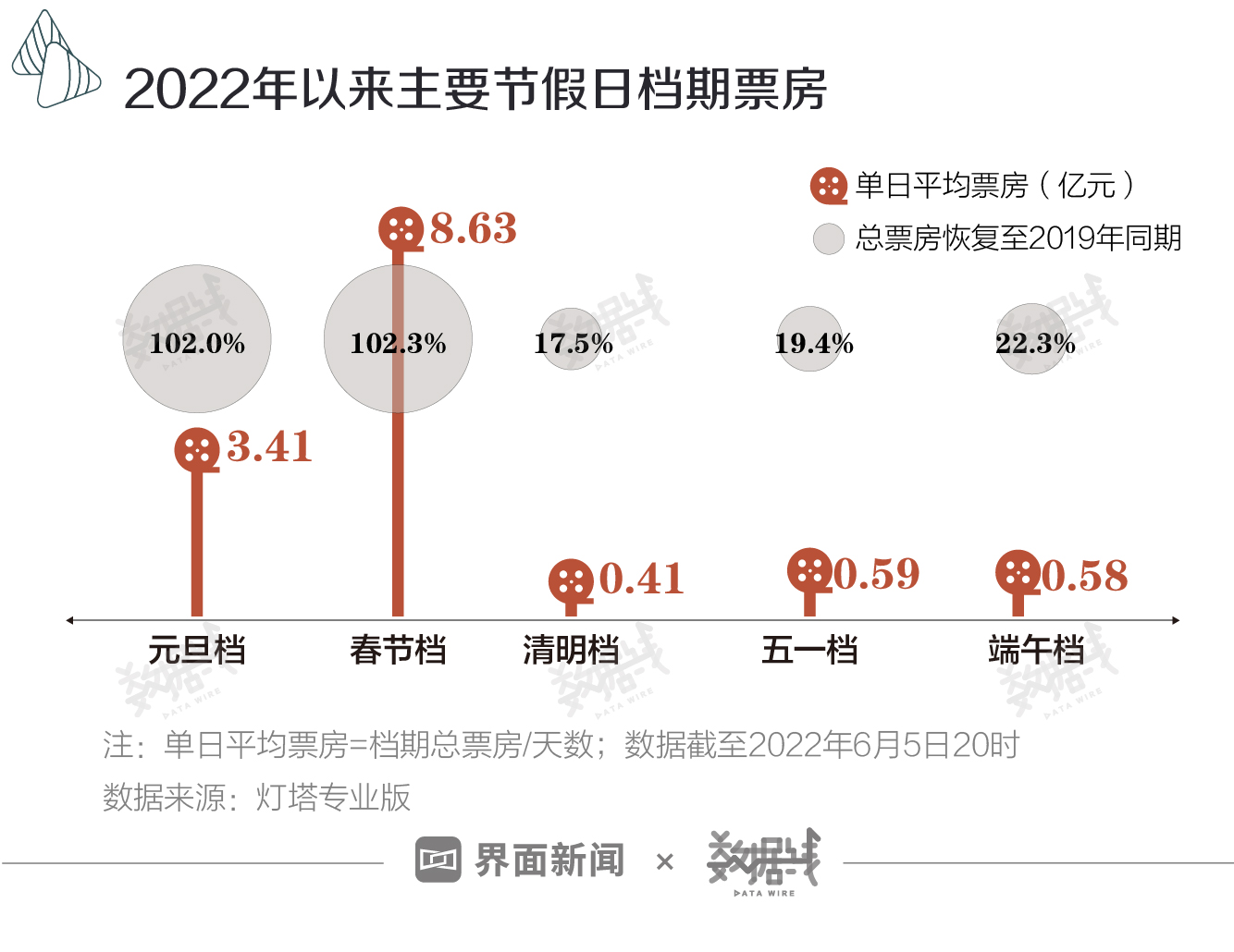 票房仅相当于疫情前两成水平,好于同年清明档、五一档