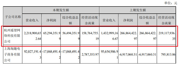 在业绩承诺期过后,2021年遥望网络的营业收入为22.19亿元,同比上升54.84%;但是净利润仅为0.65亿元,和2020年相比而减少2.02亿元,出现了75.53%的下降。年报显示,遥望网络业绩出现大幅下滑,星期六没有对其计提商誉减值准备。