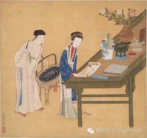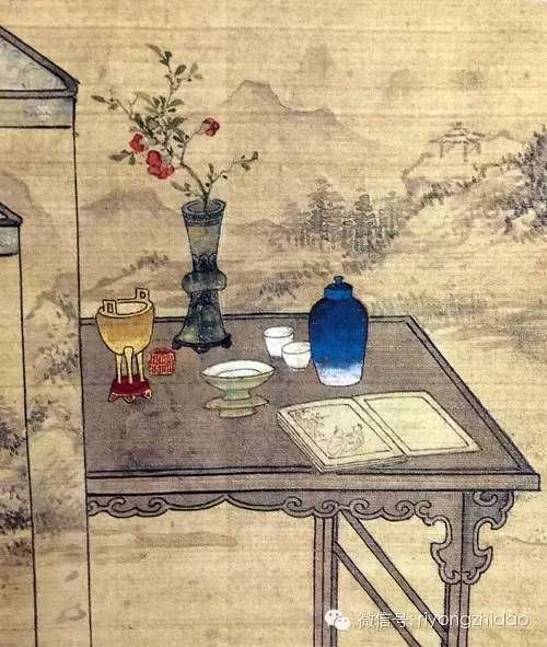 书具陈设也是非常讲究的,如在《长物志》中“坐几。天然几一,设于室中左偏东向,不可迫近窗槛以逼风日 。”“画桌可置奇石,或时花盆景之属。"“置瓶,随瓶制置大小倭几之上。春夏用铜,秋冬用瓷。堂屋宜大,书房宜小。贵铜瓦,贱金银。忌有环,忌成对 。“雅致的文玩放置于雅致的环境之中,映射出一种雅致的生活意趣。