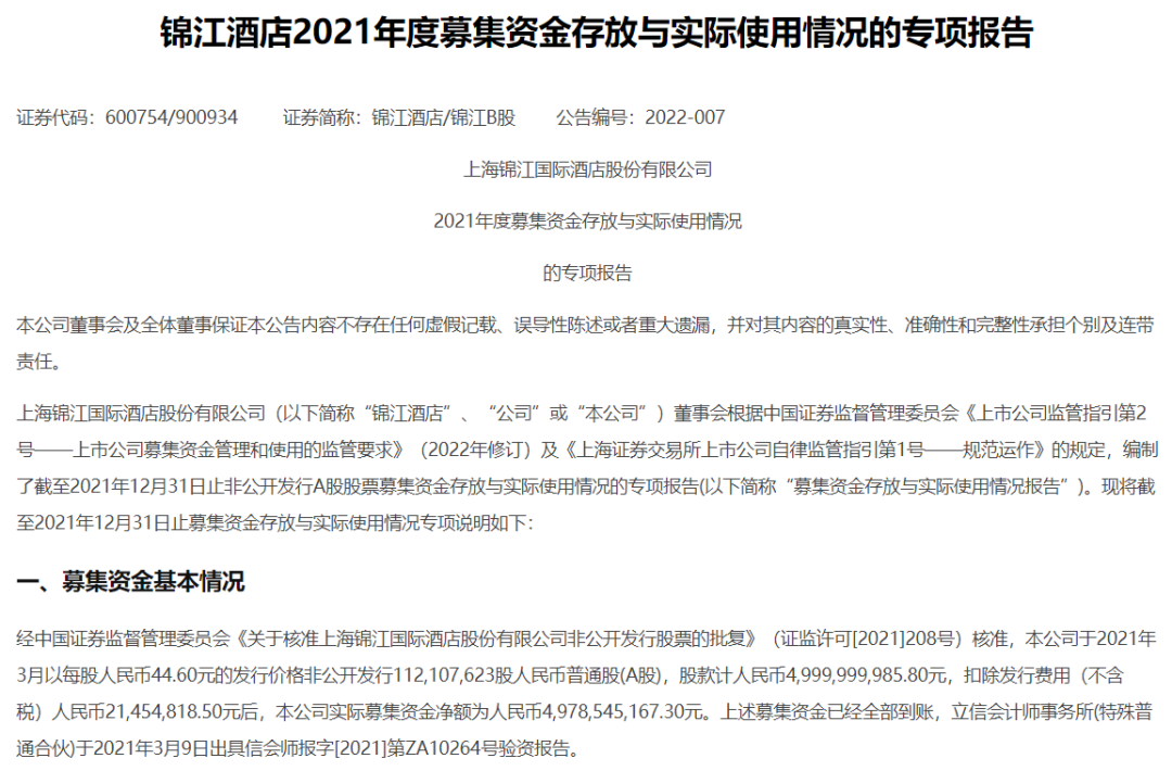按照锦江酒店此前规划,此次50亿元定增融资中,35亿元用于酒店装修升级、15亿元用于偿还金融机构贷款。