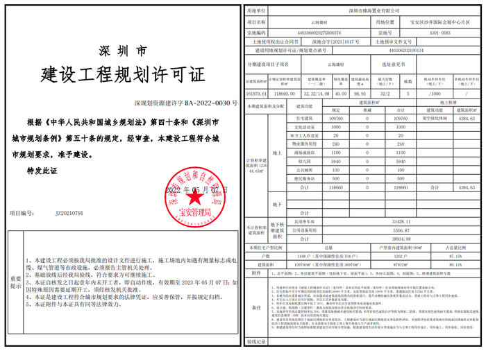 6月2日,深圳市规划和自然资源局宝安管理局公布了“云海臻府”项目《建设工程规划许可证》及总平面图。