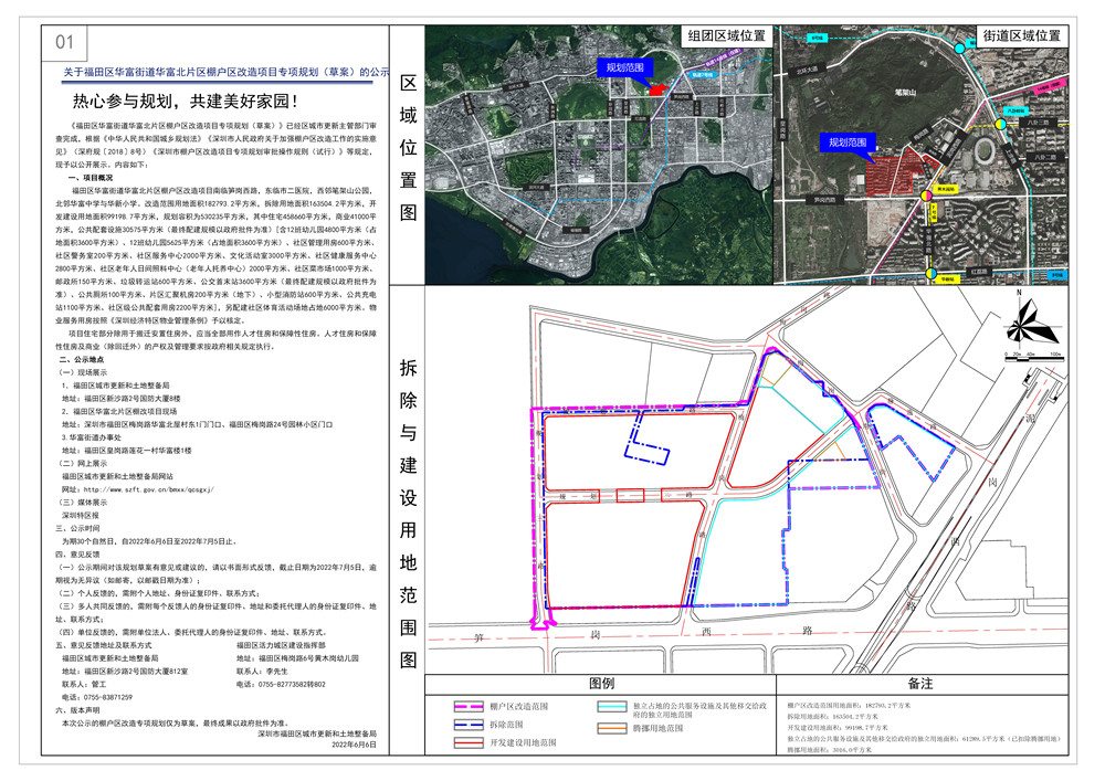 今日(6月6日),福田区城市更新和土地整备局公示《华富街道华富北片区棚户区改造项目专项规划(草案)》(以下简称规划)。