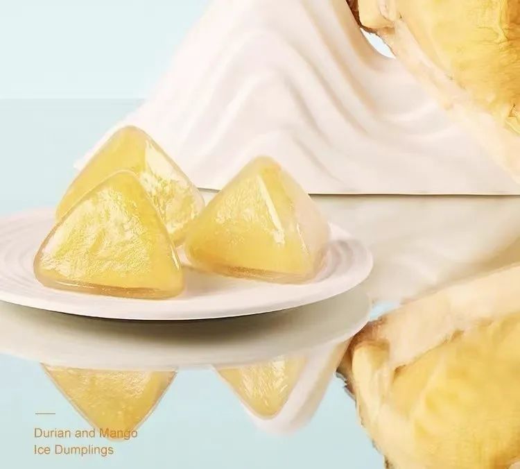 另外,保留粽子造型,但把粽子做成甜品的商品也备受青睐。比如榴芒一刻天猫旗舰店推出的榴莲冰粽,在店铺前台显示月销量已突破9万,精致的颜值和中点西做的方式让年轻消费者心甘情愿买单。