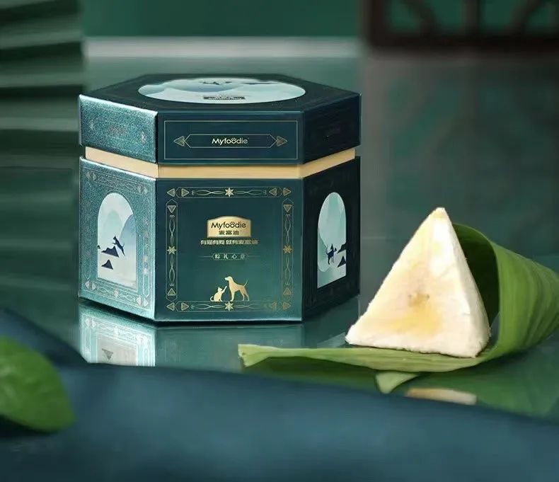 这款新品选用品牌的两大主打水果——榴莲和芒果,将食材跨界做出新口味。既保留了粽子造型,又带来区别于普通粽子完全不同的口感。食用方式上也无需加热,只需解冻即可。当下想在传统粽子的基础上翻新出惊艳口味是一件有难度的事,但换个思路,只保留有特色的三角粽子造型,既能让消费者自动和端午节产生联想,又能扩大可创新的范围。类似跨界创新在宠物食品上也有品牌已经做了尝试。