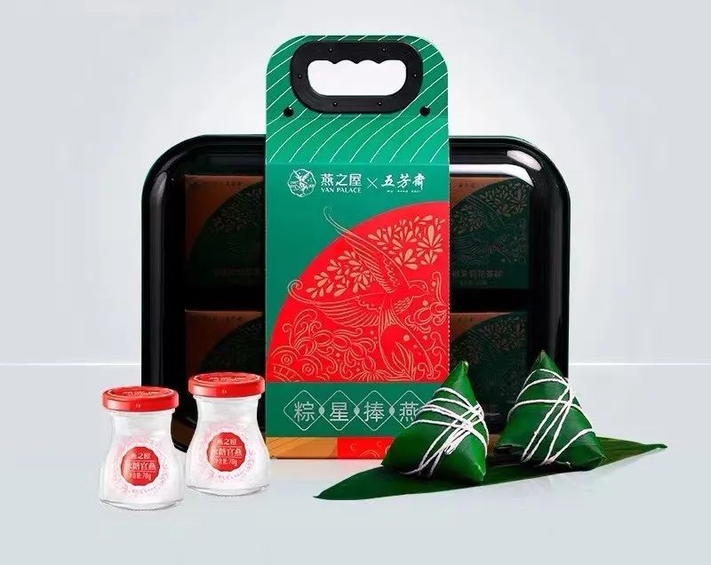 此外,五芳斋还和燕之屋推出联名定制端午礼盒“粽星捧燕”,上演了“文化当潮”的跨界。