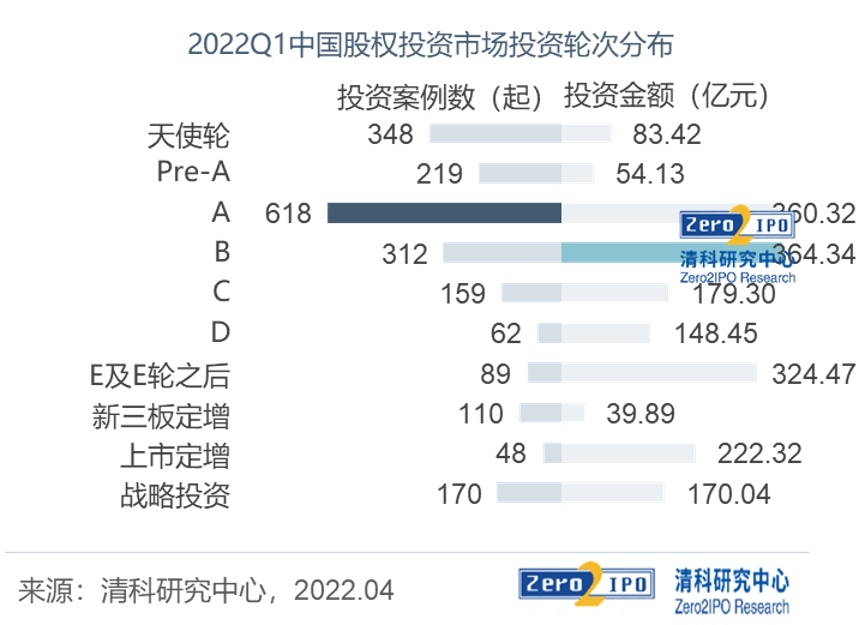 清科研究中心数据显示,从轮次分布来看,2022年Q1中国VC/PE投向A轮的案例数最多,位居全国第一;天使轮投资案例数超过B轮,位居全国第二,且天使轮平均投资金额自2020年以来持续上升。