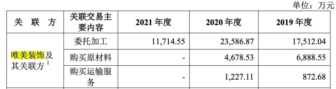 同时,2019年、2020年,马可波罗受其委托生产陶瓷产品,并向唯美装饰及其控制的公司销售金额分别为7.3亿元及4.05亿元。