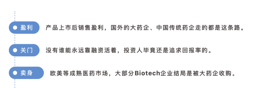 昂阔医药联合创始人和首席商务官Andy Fu同样曾指出,在一个成熟的生态环境里,Biotech企业的出路可以简单划分为三条。