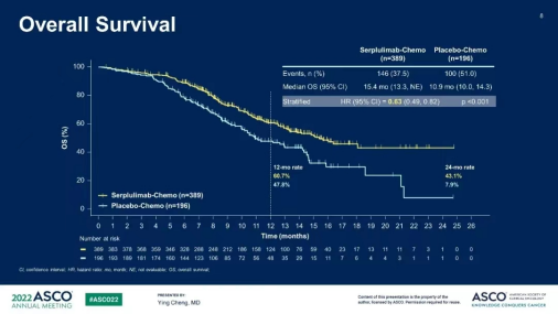 程颖教授表示,在H药的国际多中心临床研究中,全球114个研究中心的受试者参加了筛选,入组了超过31.5%高加索人种。研究结果显示,斯鲁利单抗联合化疗一线治疗广泛期小细胞肺癌的中位总生存为15.4个月。