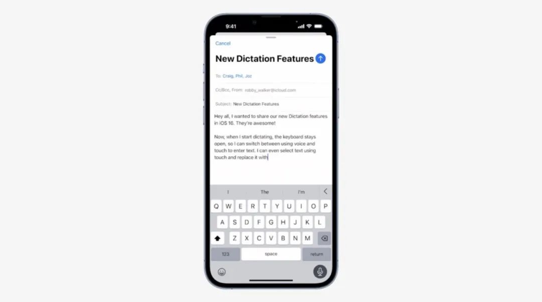 iOS 16还对听写功能进行了升级,在声音转录过程中,用户可以手动进行输入,与声音转录并行,也就是说“边听边改”成为了可能,对于文字工作者来说是一大福音。