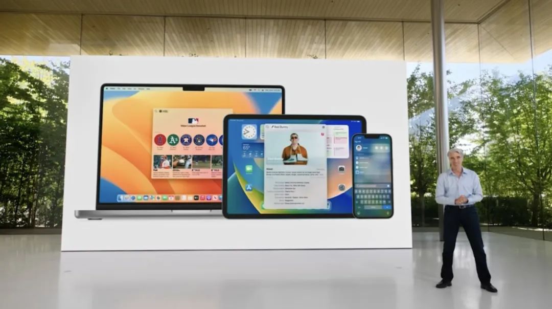 既然是开发者大会,软件升级自然是重点,光是iOS 16就有数十项升级,包括锁屏界面的“大改”、对Matter智能家居标准的支持。iPadOS 16加强了办公场景的“协作性”,而macOS 13优化了多任务处理能力,同时强化了与iPhone和iPad的互通体验,iPhone甚至直接成了电脑的“摄像头”。