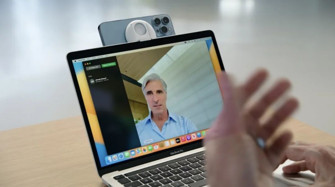 并且借助连续互通相机功能,用户可以把iPhone当成MacBook的摄像头。