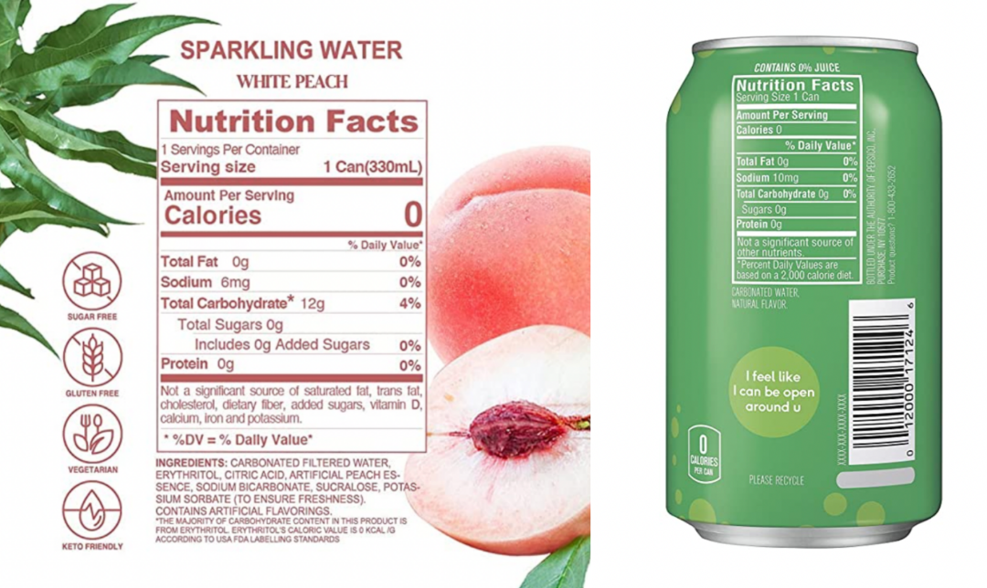 品牌属性和来源之外,美国本土消费者对产品成分的诘问也从未停止。在瓶身产品说明书上号称0卡的气泡水,为何还会含有12克的碳水化合物,而同为竞品的百事旗下的Bubly,就能做到0糖、0脂、0卡。