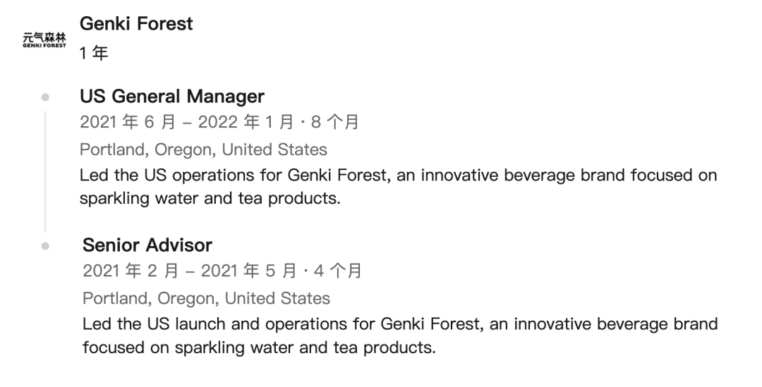 Bliss Dake,现任俄勒冈州一家名为True Terpenes的市场VP,曾经在2021年2月到2022年1月负责元气森林在美国的上线和运营。