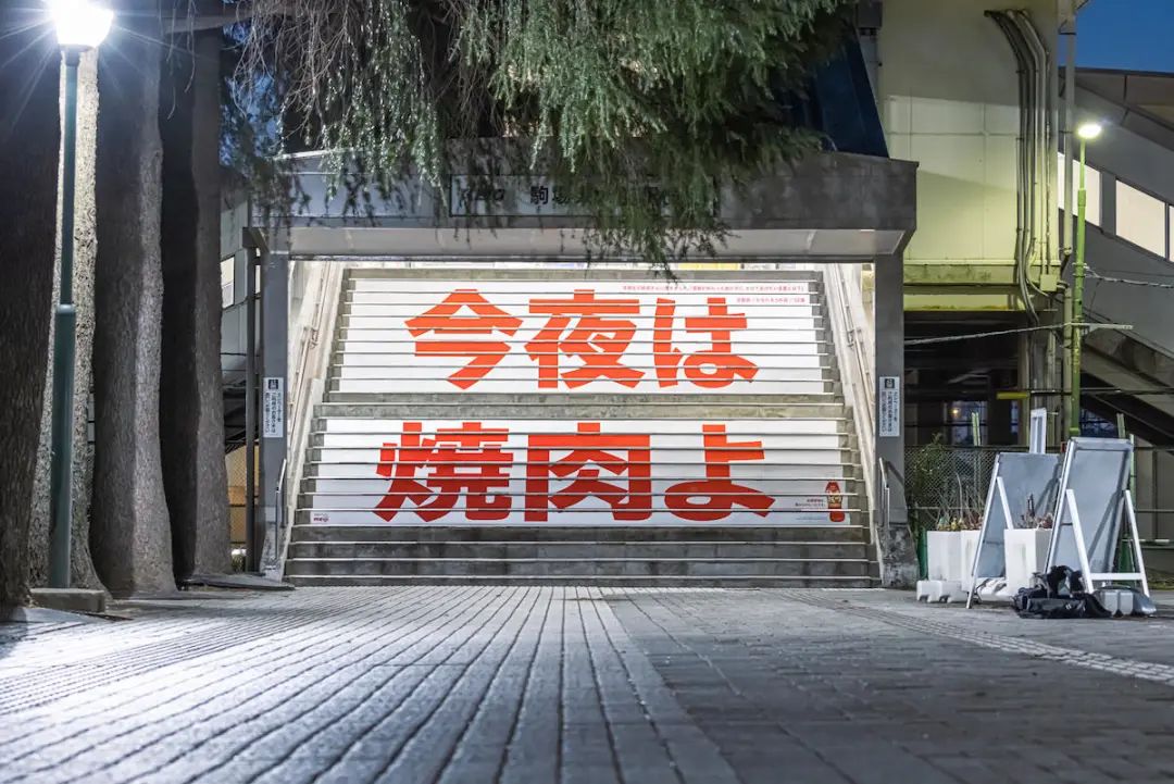 如东京大学考场附近的车站台阶广告,去考场时看到的信息是“考试放轻松!”,而从考场返回时看到的则是“今天晚上吃烤肉哦!”,这是在考生父母的采访中,一位母亲提到的在考试结束后想和孩子说的话。