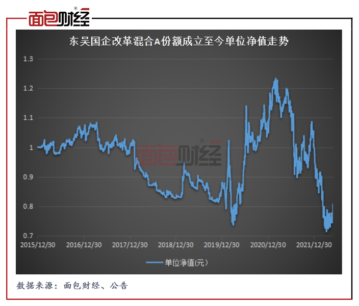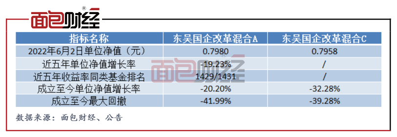 比如,东吴国企改革混合(基金主代码:002159)成立至今6年多时间,其A份额单位净值仍下跌近20%,在同类基金中排名垫底。