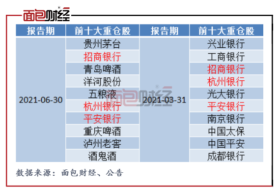 图4:2021年第一季度末与第二季度末前十大重仓股对比