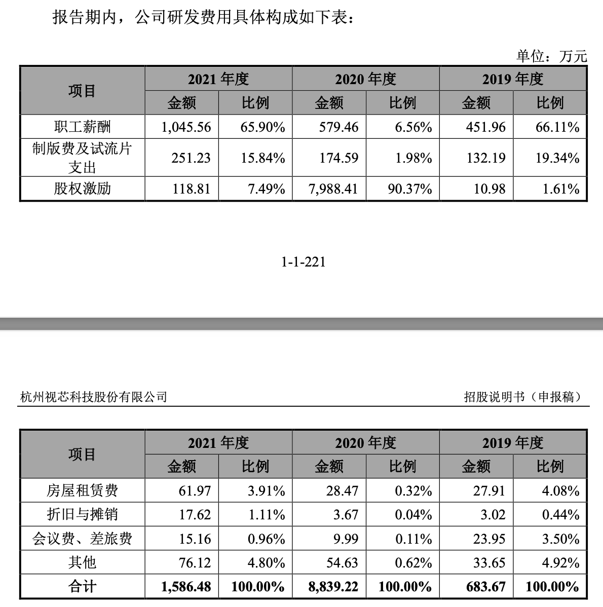 与此同时,视芯科技的研发人员待遇还不如销售人员,报告期内公司的研发人员年均薪酬(万元/人)分别为18.13、18.90、24.17,而同期销售人员年均薪酬(万元/人)分别为26.42、27.86、50.06。