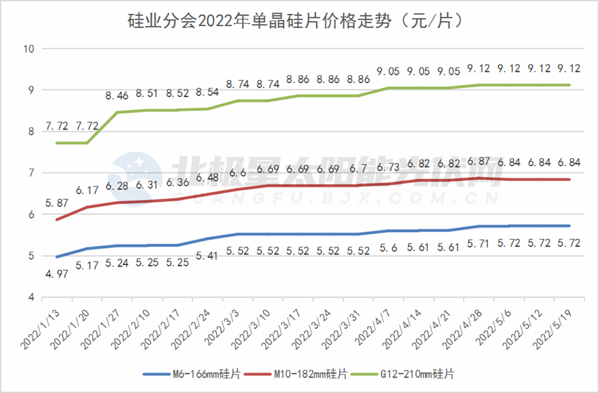 观察硅料环节的生产运行及出货情况,目前硅料企业大多满产运行,业内人士预测,预计5月国内多晶硅产量约6.22万吨,环比增加7.2%。