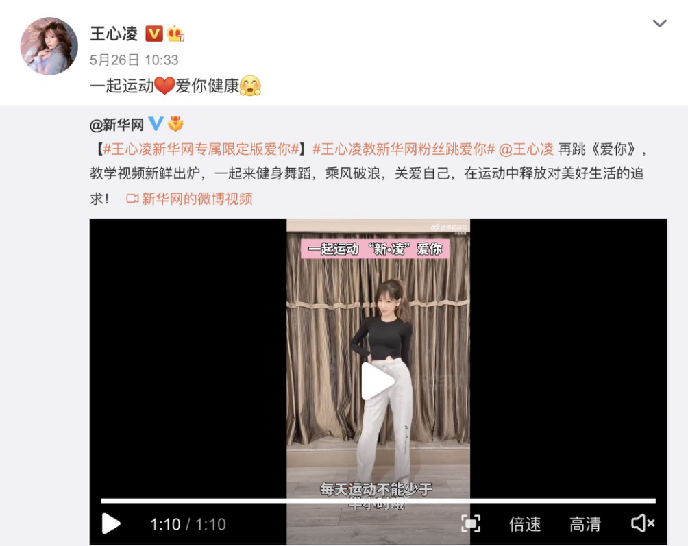 刘畊宏本草纲目毽子舞火了之后,不停在创作新舞蹈。而且刘畊宏、王婉霏夫妇在各个社交平台的营业也很卖力。相较之下,王心凌走红之后,微博、抖音的营业都显得“不够努力”。