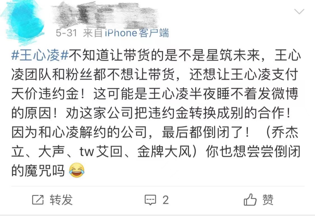 王心凌工作室早在5月1日的时候,就官宣加盟了专门的MCN运营公司星筑未来,主要帮助运营小红书和抖音。但目前看其抖音运营还处于比较“野生”状态,就连抖音发布的浪姐合拍视频还是横屏的,这就显得很不专业。5月末,还有王心凌粉丝讨伐星筑未来让其带货。