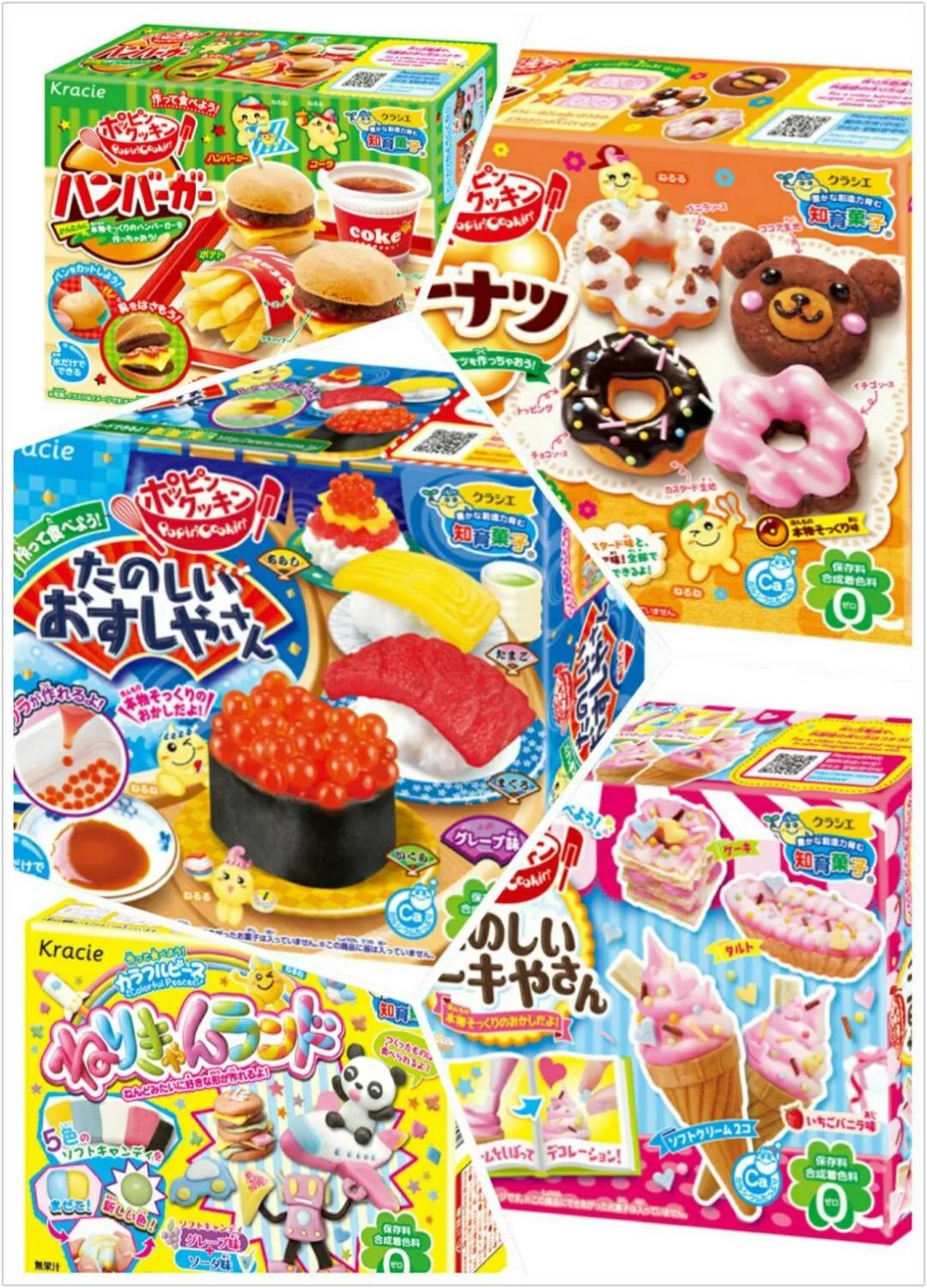 1986年,Kracie食品研发出了一种新型的糖果,通过水与糖果粉末的不断搅拌,放入模具中,最终可以定型成甜甜圈、蛋糕甚至是日本拉面的形态。这类产品的主要目的就是提升动手能力,进一步开发孩子的智力。自此之后,日本的食玩产业正式成长为现在的状态。